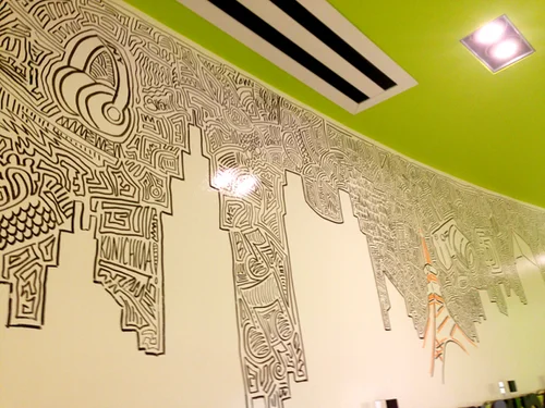 I doodle a lot, and somebody noticed. So when I was approached to create a mural in the lobby in the style of one of my doodles, I was flattered and excited. Eight hours and several markers later, we had this. And I got a photo with Sony CEO Phil Molyneux :)