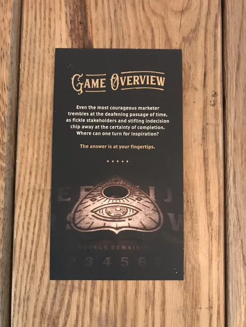Traina Design brand firm thanked their clients with a themed ouija board. I gave the copy an Edgar Allan Poe vibe: